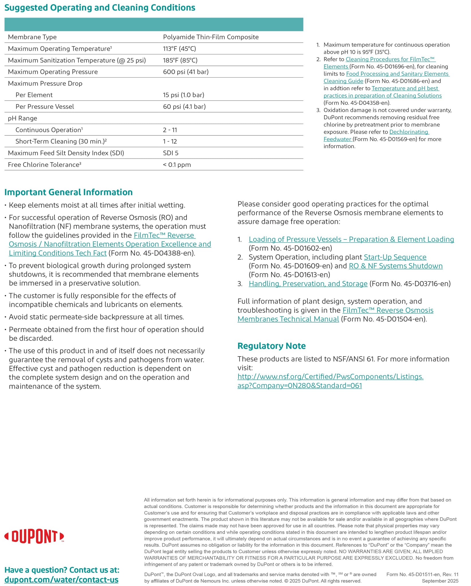 SW30-2514 FilmTec DuPont / DOW Membranes