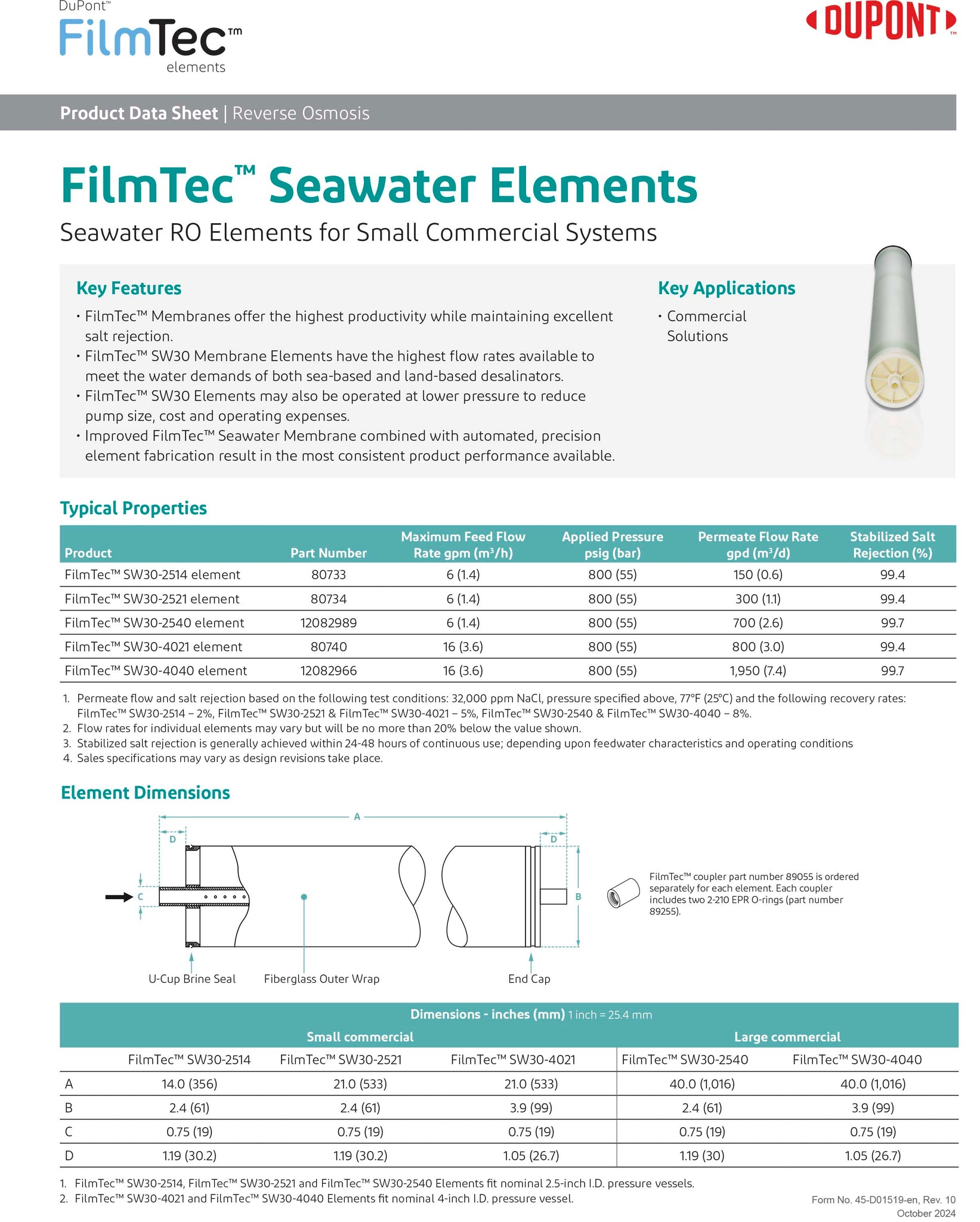 DuPont FilmTec SW30-4040 (Seawater RO Membrane)