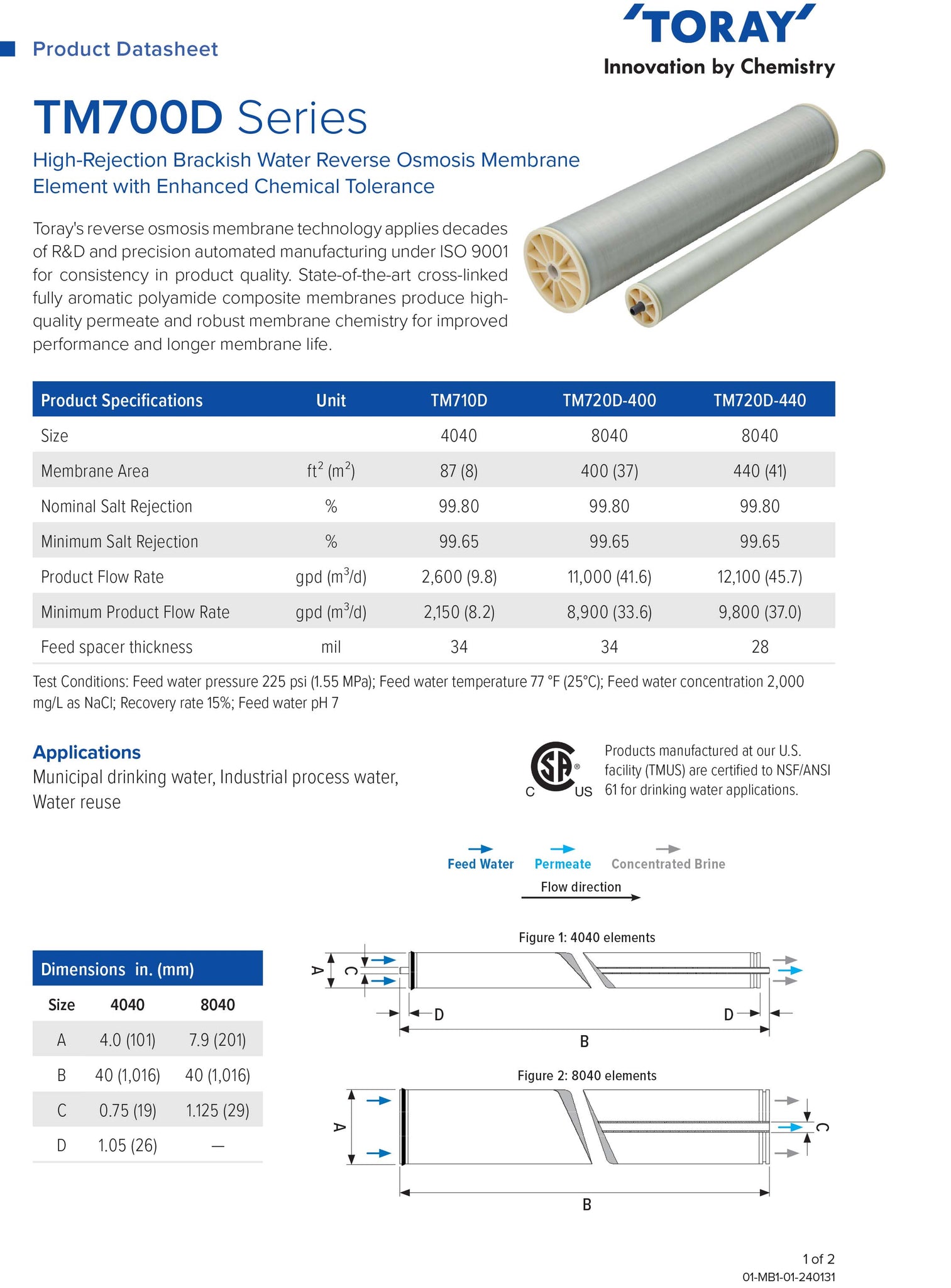 TM710D Toray 225 PSI 2,600 GPD 4 x 40 inch membranes