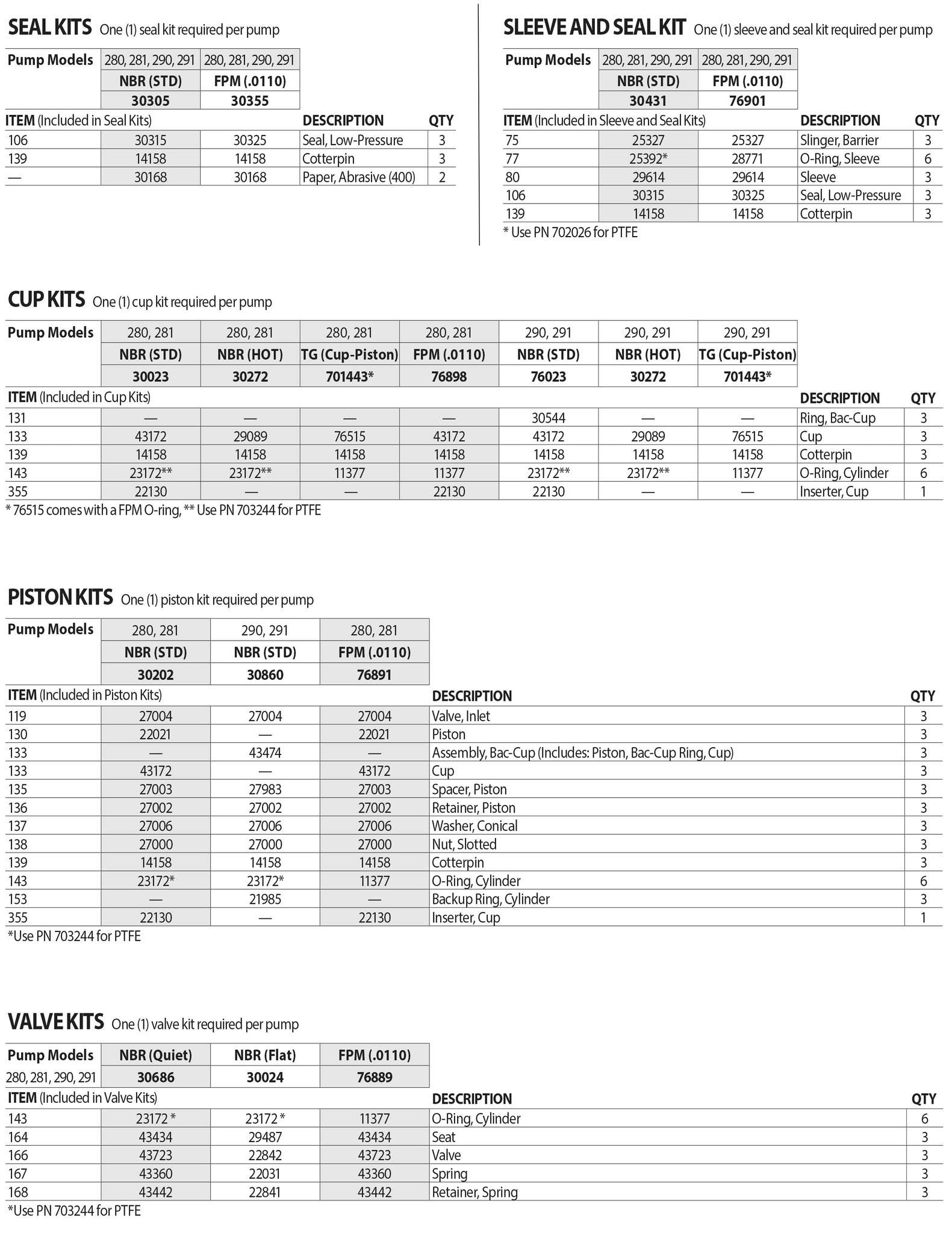 PLEASE REFERENCE DATA SHEETS & TABLE BELOW