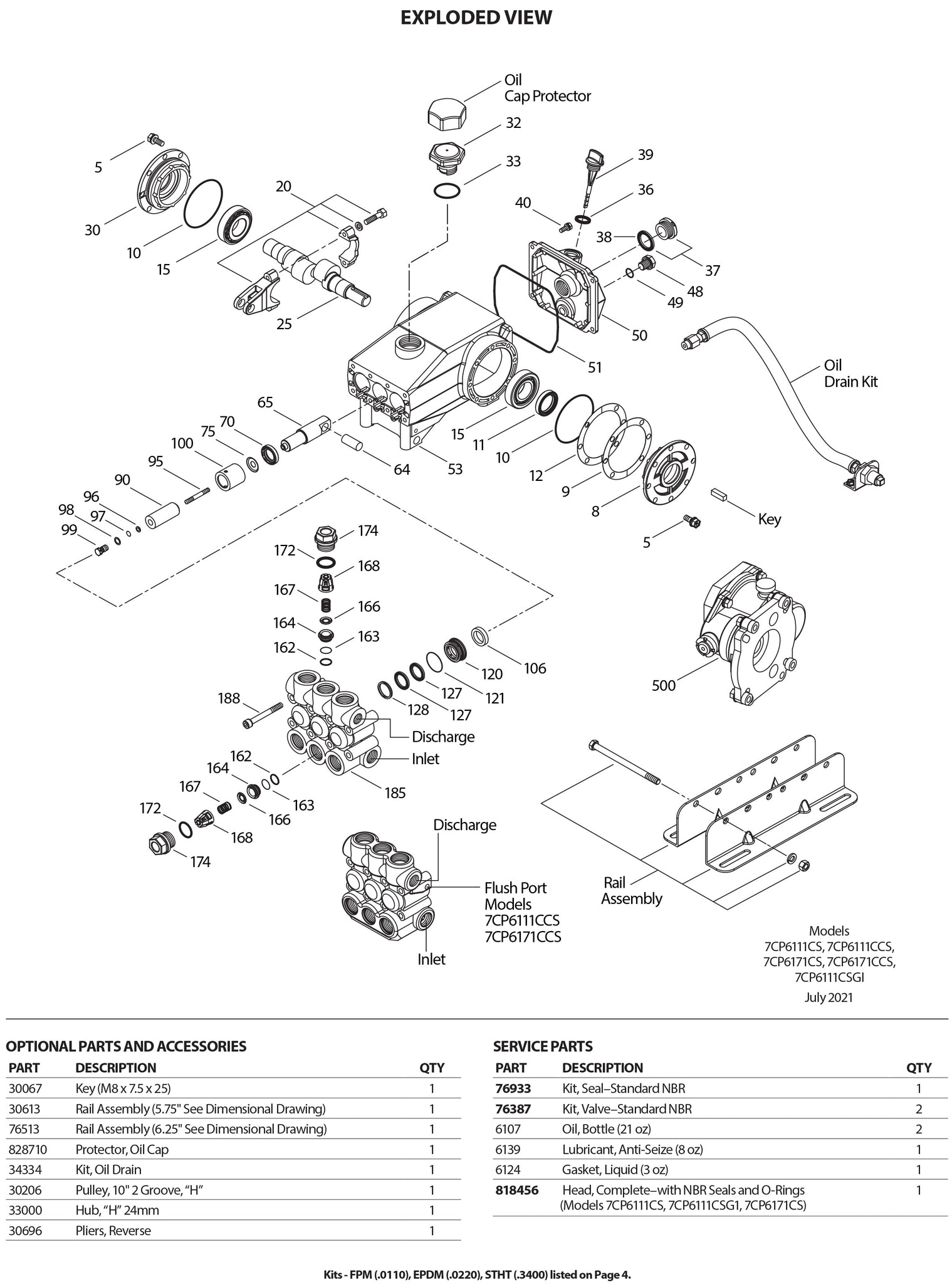 Designed for continuous-duty operation, the 7CP6171CS utilizes high-density, polished solid ceramic plungers to provide an exceptionally smooth wear surface, significantly extending the life of the seals. Its 7-frame compact design allows for a smaller footprint while maintaining robust performance specifications of 10.5 GPM at 2,000 PSI. The pump operates at a low RPM of 1450, which reduces wear and internal heat build-up, further enhancing its longevity in demanding 24/7 applications.